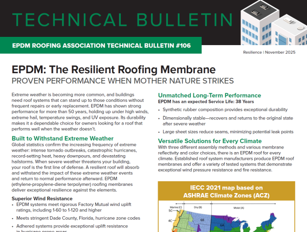 Because EPDM combines durability, flexibility, impact resistance, and long-term field performance, it provides a reliable foundation for resilient roof system design. For building owners and designers seeking roofing systems capable of withstanding severe weather while maintaining performance for decades, EPDM remains a practical and proven solution.