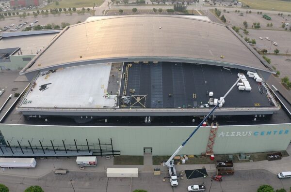 Herzog Roofing’s installation at the Alerus Center represents not only technical precision but also a model of logistical execution and environmental responsibility. Despite working in extreme wind and heat, and with many variabilities and challenges, the crew completed nearly 300,000 square feet of roofing without a single safety incident and met the project’s timeline without delays.