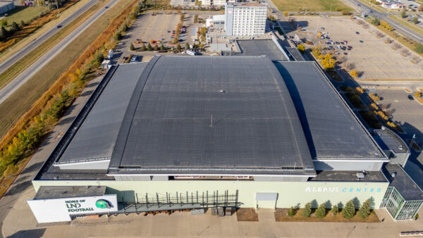 The Alerus Center roof is backed by a 30-year Elevate Red Shield™ Platinum Warranty and engineered to withstand wind speeds of up to 90 mph.